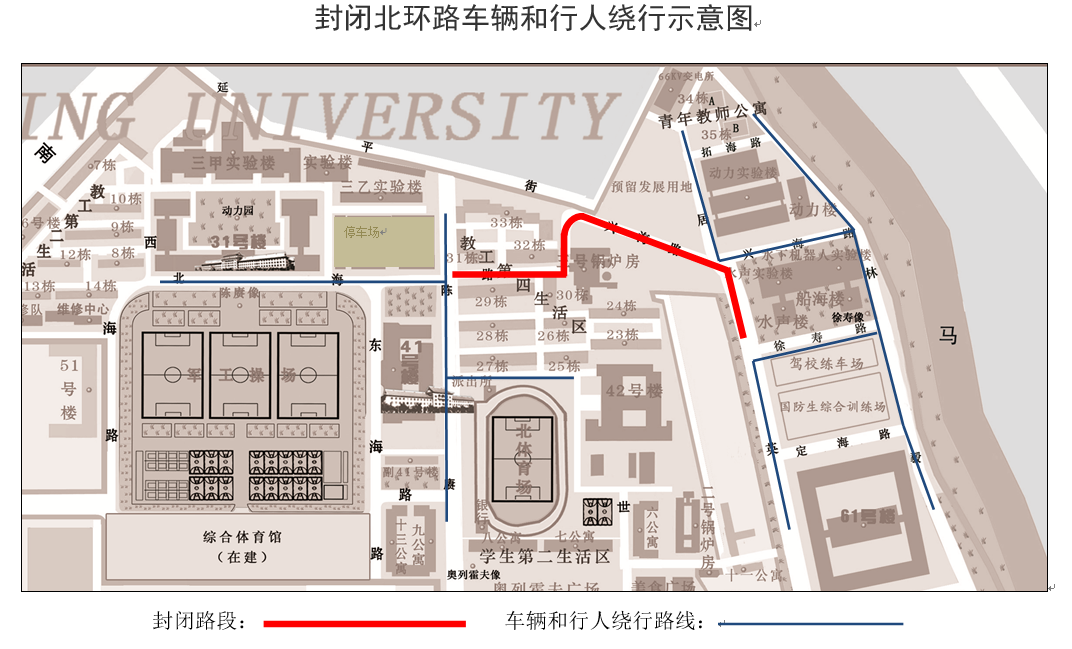 附图:封闭北环路车辆和行人绕行示意图