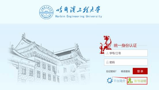 1.进入统一身份认证页面(网址为:one.hrbeu.edu.cn),点击页面中的账号说明了解登录的账号密码。